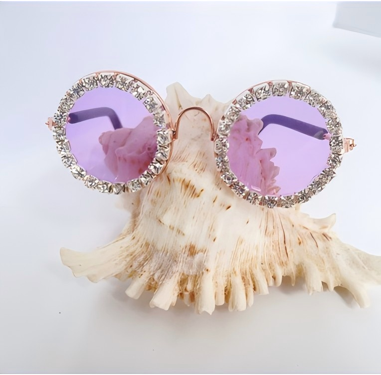 Diamond Gold Frame Glasses Purple (8CM)